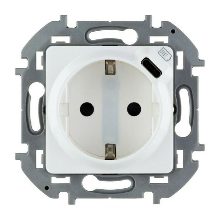 Розетка с USB Legrand INSPIRIA, скрытый монтаж, с заземлением, со шторками, белый, 673770