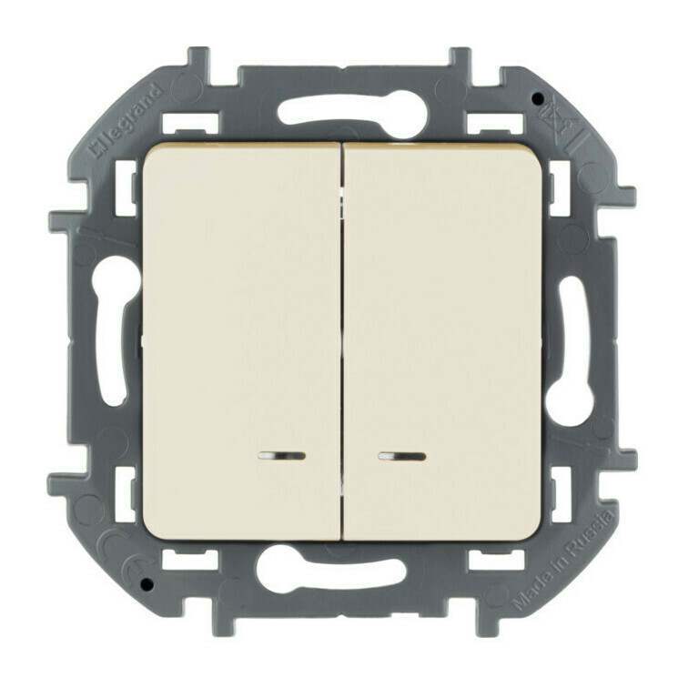 Выключатель 2-клавишный Legrand INSPIRIA с подсветкой, слоновая кость, 673631
